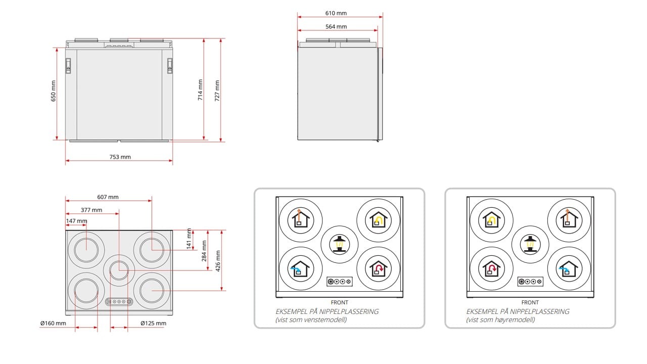 | Kanaltilkobling (Ø) | 160 mm | ||||||||||