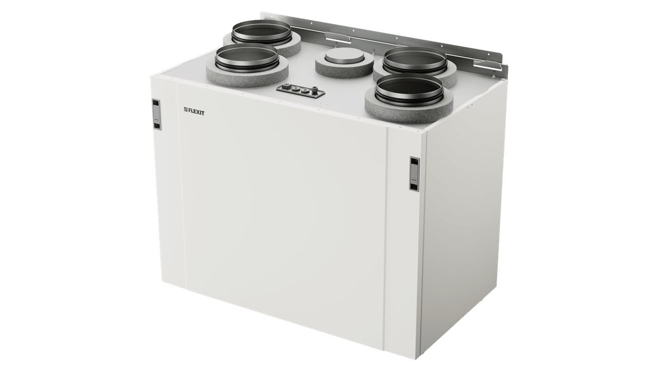 Styres som standard via Flexit GO-appen og kan kompletteres med diverse tilbehør (trådløst eller kablet), f.eks. styrepanel, fuktsensor, CO2-sensor. Automatikken er klargjort for lokal behovsstyring. Kjølegjenvinning er standardfunksjon.