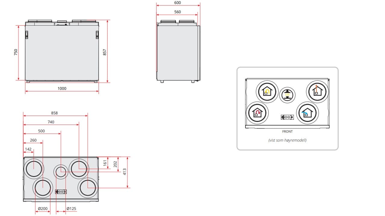 Arbeidsområde opptil 700 m3/h, ideelt for boliger på 300-450 m2.