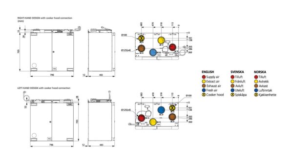 HERU 100T er også klargjort for kjøkkenventilator (bypass av rotor) slik at matos ikke føres tilbake i boligen.