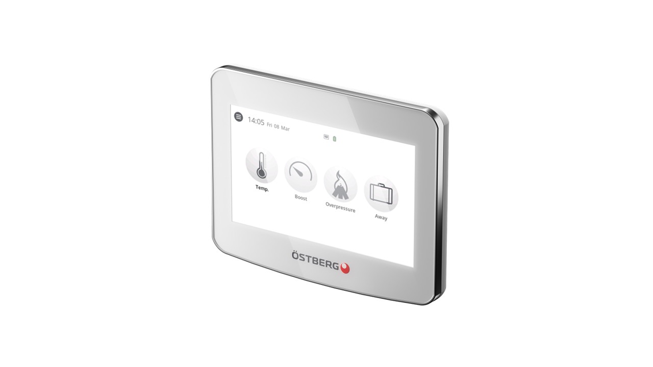 Østberg IQC Touch display er et intelligent styringspanel utviklet for å gi deg et sunt og energieffektivt inneklima. Displayet kobles trådløst til ditt HERU ventilasjonsaggregat og gir deg full kontroll via en brukervennlig 4,3” farget touchskjerm.