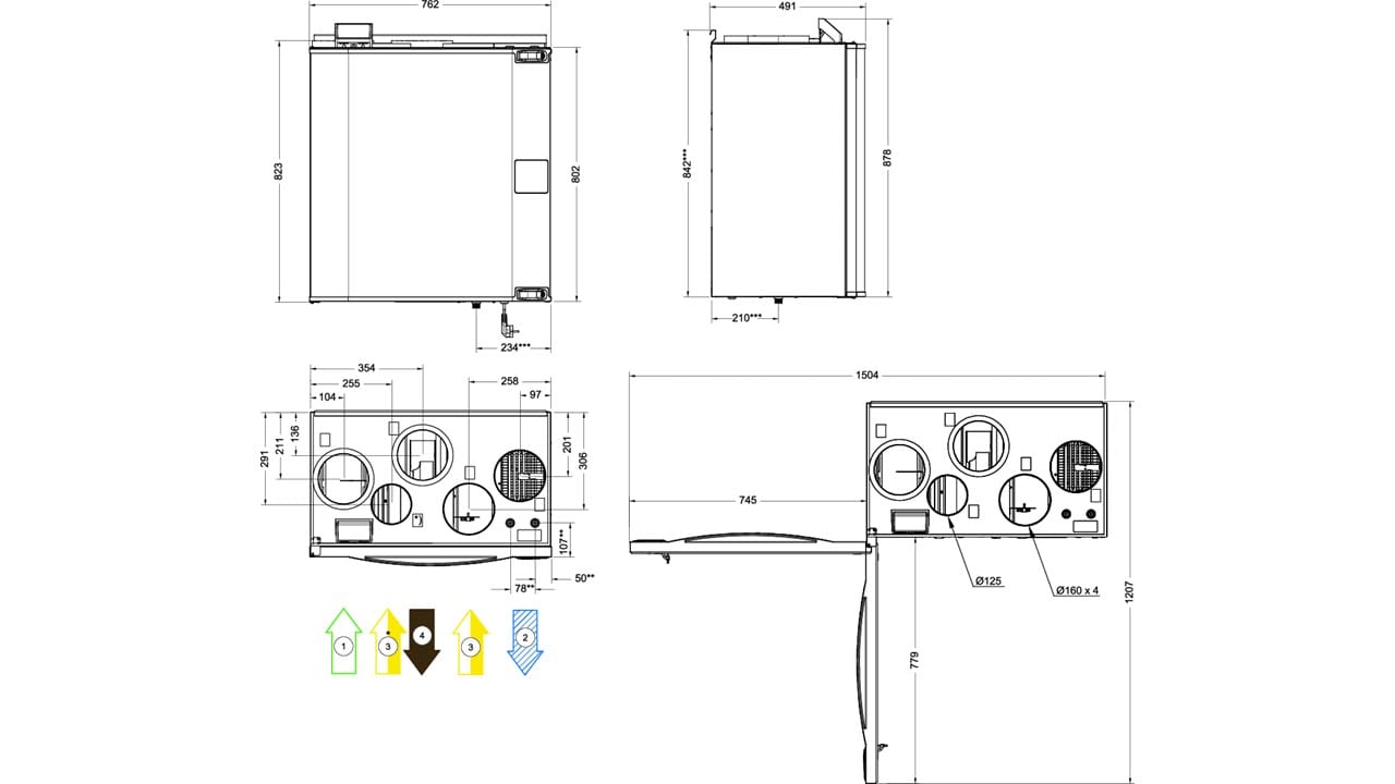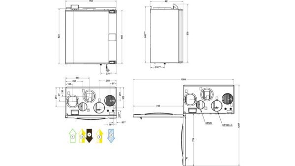 Ventilasjonsaggregat m/by-pass og toppanslutning, venstreFrekvens: 50/60 Hz